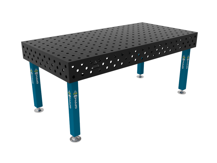 GPPH’s tables offer an incredibly stable and sturdy construction. The table top is made from 12MM thick material, this is outstanding when compared to the typical 6MM – 10MM that is usually used on lower end welding tables. In addition to this, the steel used is S355J2+N grade that is carefully selected. The steel is also unpickled so as to prevent the material becoming bright and causing arc to flash bounce off the table making the working conditions difficult for the welder. Finally, the tables are not coated with paint as it can make the surface difficult to conduct. They are coated with an oil based preparation which protects the tables during transport. Anti spatter is suggested.
